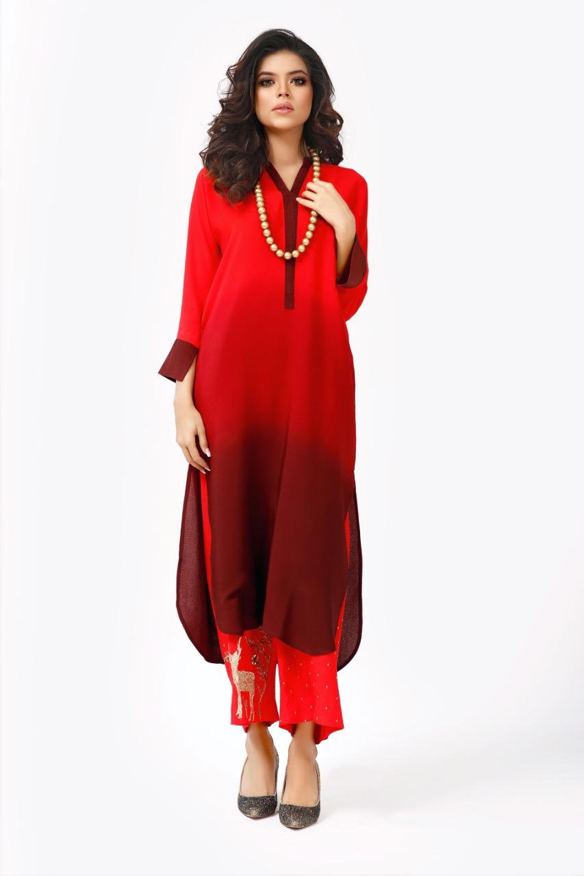 Bold and beautiful – hues of red paired with a hand worked izaar.