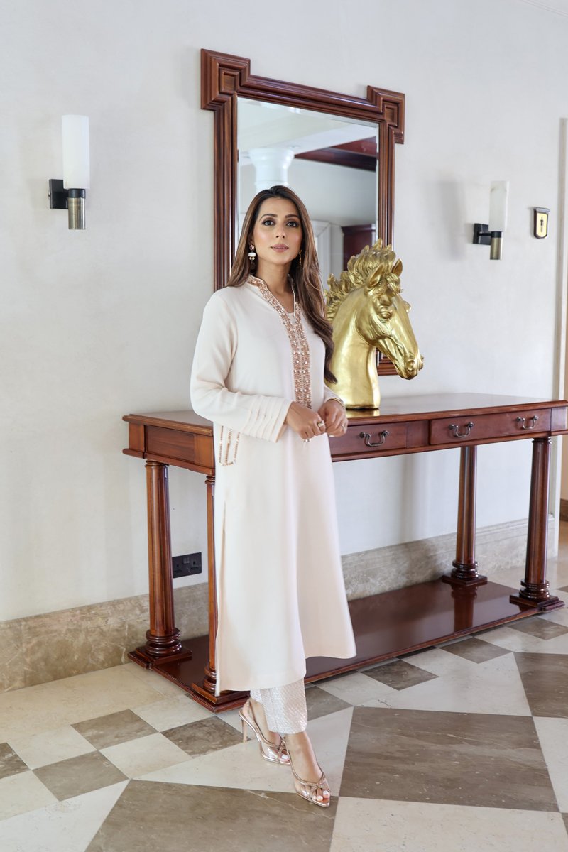 Soft pink tunic embellished with 3D sequences around the neck and pocket.